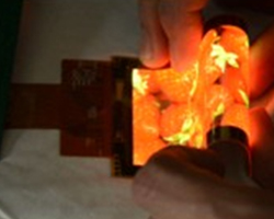 2014年1月,研制成功LTPS柔性AMOLED全彩顯示屏。該顯示屏采用LTPS TFT背板技術(shù),并應(yīng)用了自主知識(shí)產(chǎn)權(quán)的透明陰極和OLED器件技術(shù),其屏體顯示尺寸為3.5英寸,厚度為22微米,重量不足0.2克,彎曲半徑小于5毫米。