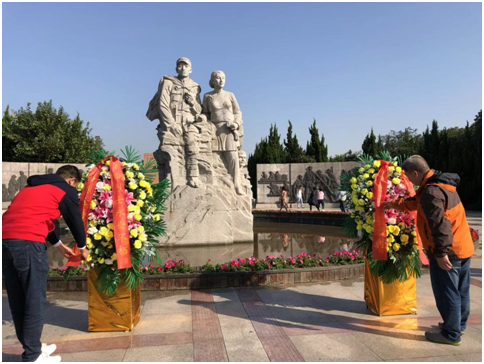 緩步步入瞻仰廣場(chǎng)敬獻(xiàn)花籃,緬懷先烈。