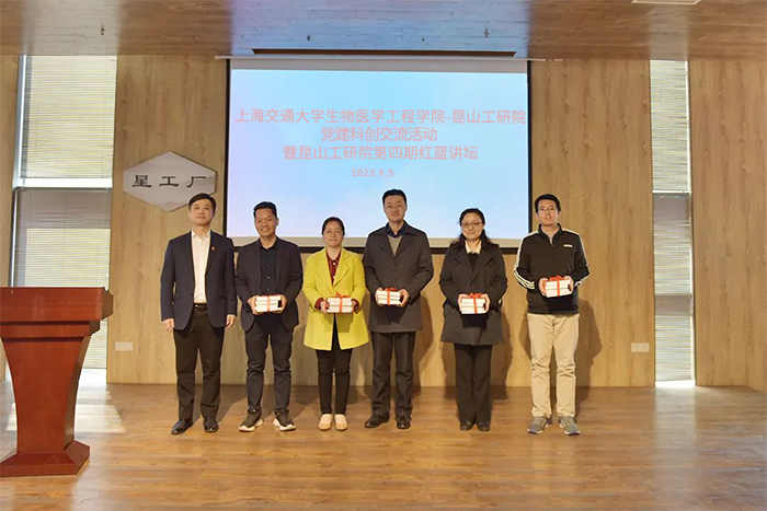 臺(tái)上高校創(chuàng)新團(tuán)隊(duì)推介硬核研究成果,臺(tái)下“伯樂(lè)”認(rèn)真聆聽(tīng)尋找“千里馬”。4月9日,上海交通大學(xué)生物醫(yī)學(xué)工程學(xué)院多個(gè)黨支部齊聚昆山工研院,在跨省黨建交流中,推動(dòng)科創(chuàng)項(xiàng)目面對(duì)面“相親”。這也是工研院通過(guò)“黨建紅”引領(lǐng)“科創(chuàng)藍(lán)”,推動(dòng)校地供需精準(zhǔn)對(duì)接的一種新探索。