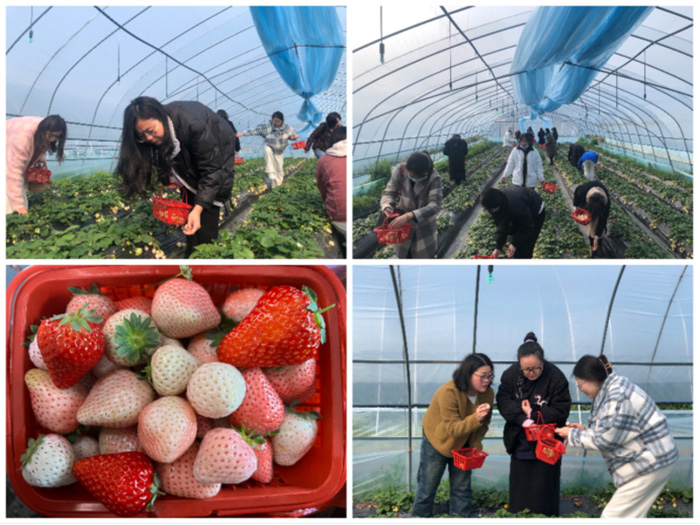 草莓棚里生機勃勃,紅綠交映,陣陣芳香撲面而來,一顆顆草莓在綠葉的襯托下嬌艷欲滴。女職工們小心翼翼地行走在草莓土壟之間,在綠枝叢中尋找“藏匿”的果實,盡情親近大自然,享受著無限春光,體驗親手采摘的樂趣,大家邊品嘗自己剛采摘的新鮮草莓,邊分享自己生活和工作中的樂事,時而談笑風生、時而駐足合影。