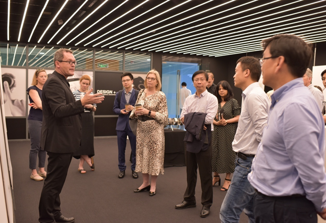 蒙納士大學藝術(shù)與建筑設(shè)計(昆山)中心主任伊恩王教授向Susan Elliot、余艾冰一行介紹中心基本情況