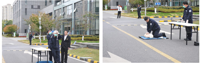 “心跳、呼吸停止后,必須立即開始人工呼吸和心臟按壓,最簡單的人工呼吸是口對口有節(jié)奏的吹氣,吹氣時可用手捏住鼻孔”。120急救中心醫(yī)生現(xiàn)場講授突發(fā)事件的急救知識,同時通過邊講解邊操作方式,將急救現(xiàn)場常用的止血、包扎、固定、搬運(yùn)及心肺復(fù)蘇救護(hù)等基本操作方法一一教授給大家。