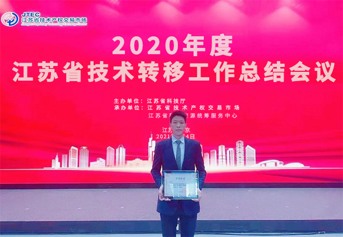 2021年3月4日,由江蘇省科技廳主辦的“江蘇省技術轉(zhuǎn)移工作總結會議”在南京召開。會議全面總結和部署了2020及2021年度全省技術轉(zhuǎn)移工作,表彰了一批技術轉(zhuǎn)移工作先進集體、先進個人和優(yōu)秀技術轉(zhuǎn)移經(jīng)理人,推動我省技術轉(zhuǎn)移工作再上新臺階。