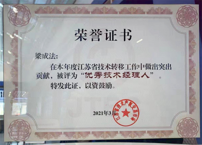 昆山唯一!“一帶一路”國際先進技術研究院梁成法獲評“江蘇省優(yōu)秀技術經(jīng)理人”