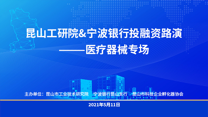 5月11日下午,昆山工研院投融資系列路演——醫(yī)療器械專場順利舉行。本次路演活動由工研院、寧波銀行昆山支行、昆山市科技企業(yè)孵化器協(xié)會共同主辦,活動邀請了智銀資本、蘇州產(chǎn)投、太浩創(chuàng)投的專業(yè)嘉賓以及醫(yī)療器械領(lǐng)域的優(yōu)秀人才科創(chuàng)企業(yè)參加。