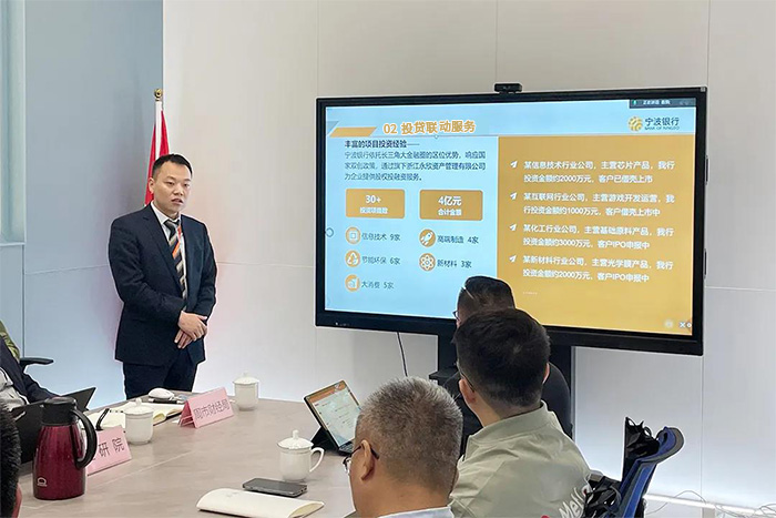 寧波銀行在開(kāi)場(chǎng)中向在場(chǎng)的企業(yè)代表就投貸聯(lián)動(dòng)主詳細(xì)介紹了“科創(chuàng)貸”等產(chǎn)品。