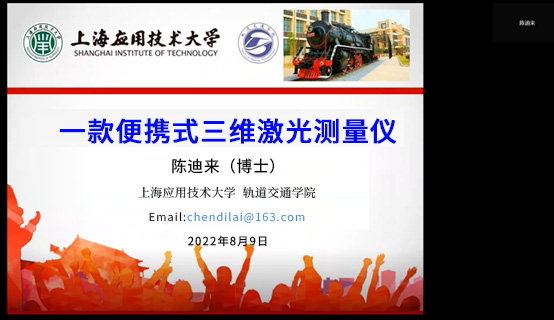 隨后,來自上海應(yīng)用技術(shù)大學(xué)的陳迪來講師就“一款便攜式三維激光測(cè)量?jī)x”做了報(bào)告。