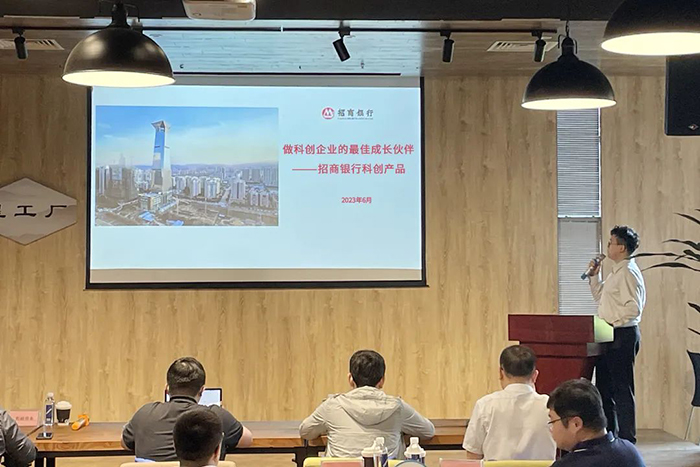 開場,招商銀行向在場嘉賓詳細介紹了一系列面向人才科創(chuàng)企業(yè)的金融產(chǎn)品,包括信保貸、昆科貸、專精特新貸等,為科創(chuàng)型企業(yè)在債權和股權市場方面提供金融支持。