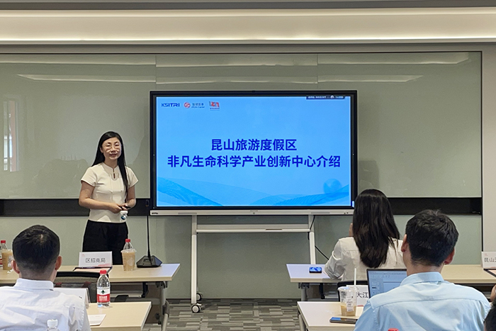 作為昆山旅度區(qū)集聚和服務(wù)海內(nèi)外知名生命科學科研創(chuàng)新團隊的前哨站,非凡生命科學總經(jīng)理劉萍詳細介紹了昆山旅游度假區(qū)的區(qū)位優(yōu)勢和招商政策,以及非凡生命科學產(chǎn)業(yè)創(chuàng)新中心的特色和服務(wù)范圍,助力參會企業(yè)深入了解昆山旅度區(qū)投資環(huán)境。