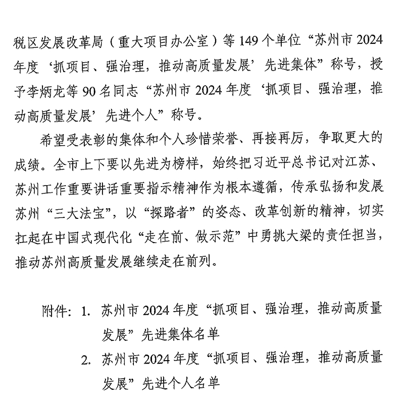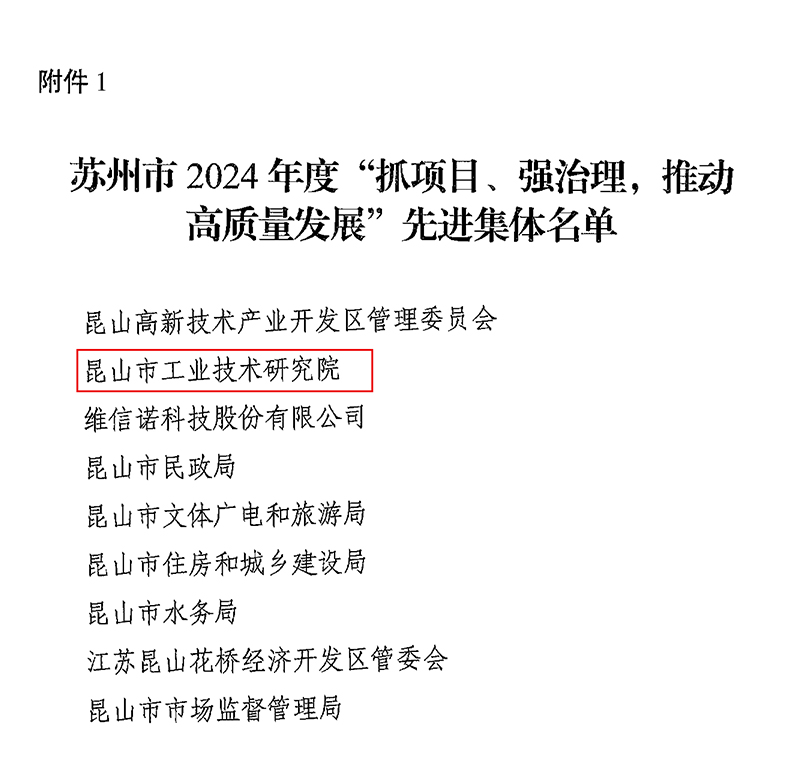 日前,蘇州市委、市政府公布了2024年度“抓項目,強治理,推動高質量發(fā)展”先進集體、先進個人表彰決定,昆山工研院因在科技招商、創(chuàng)新策源、生態(tài)打造等方面表現(xiàn)突出,榮獲“先進集體”稱號。